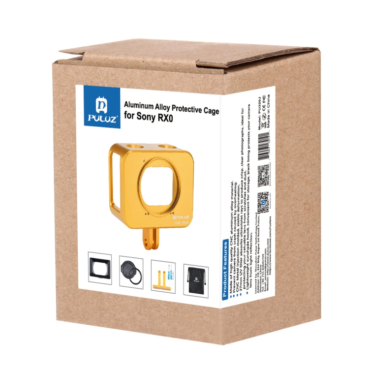 PULUZ for Sony RX0 Aluminum Alloy Protective Cage + 37mm UV Filter Lens + Lens Sunshade with Screws and Screwdrivers(Gold)