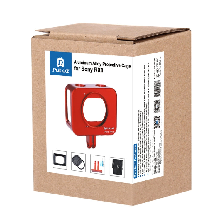 PULUZ for Sony RX0 Aluminum Alloy Protective Cage + 37mm UV Filter Lens + Lens Sunshade with Screws and Screwdrivers(Red)