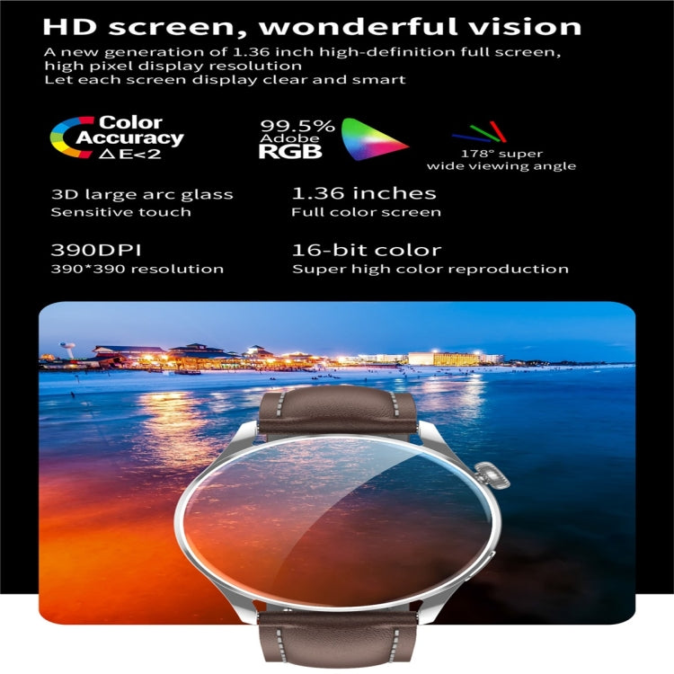 Q3 Max 1.36 inch Color Screen Smart Watch,Leather Strap,Support Heart Rate Monitoring / Blood Pressure Monitoring(Brown)