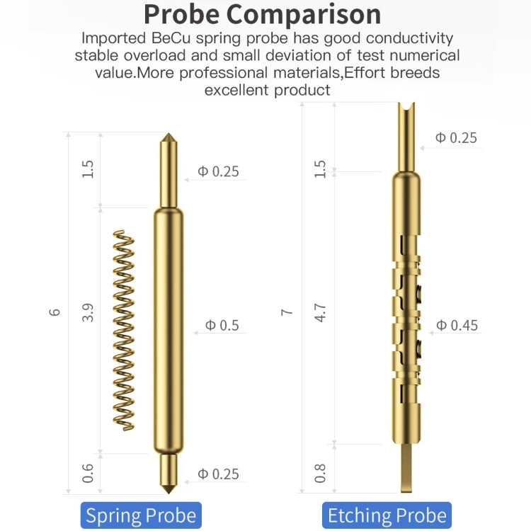 5. With good conductivity, stable overload, and small and more accurate deviation of test numerical value, the conical probe is not easily stained with rosin and solder