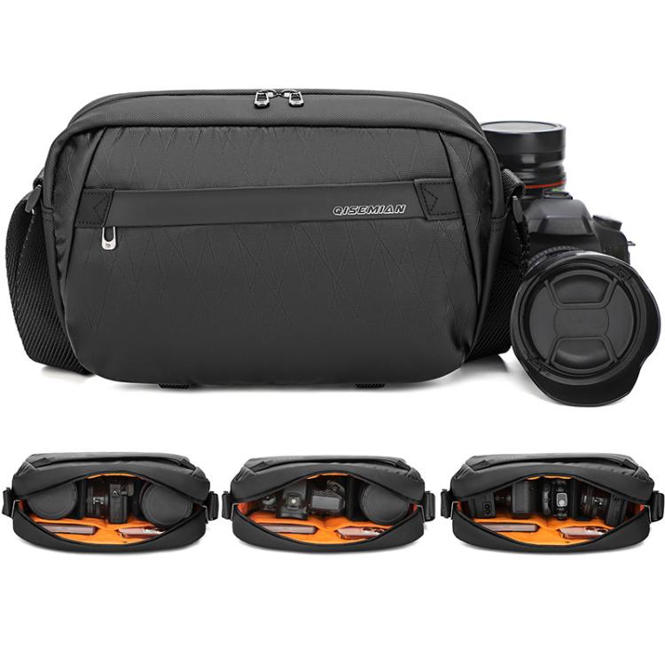 QISEMIAN Men Messenger Camera Bag Water-Resistant DSLR Photography Sling Bag With Removable Dividers & Tripod Mount(Black)