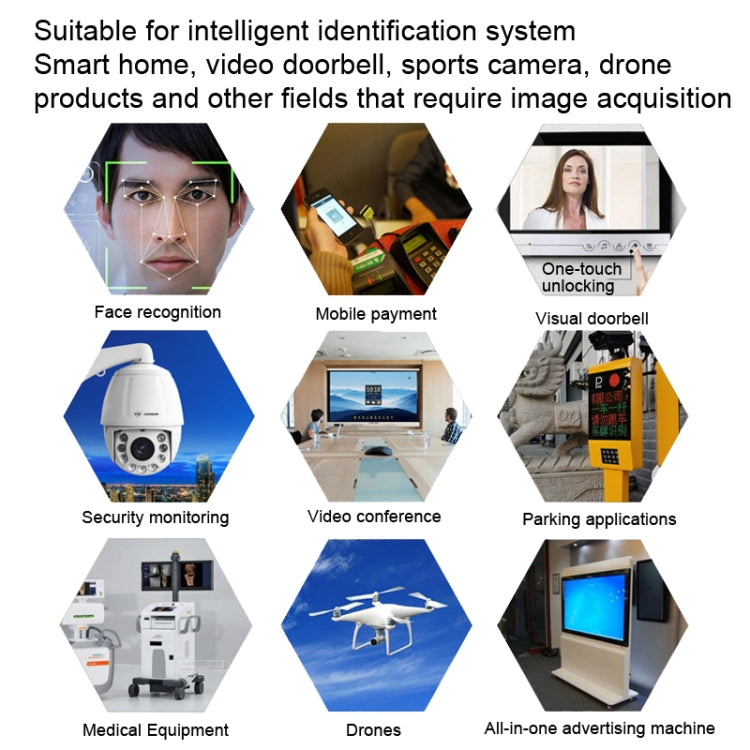 1. Suitable for intelligent identification system, smart home, visual doorbell, sports camera, drone products and other areas that require image acquisition