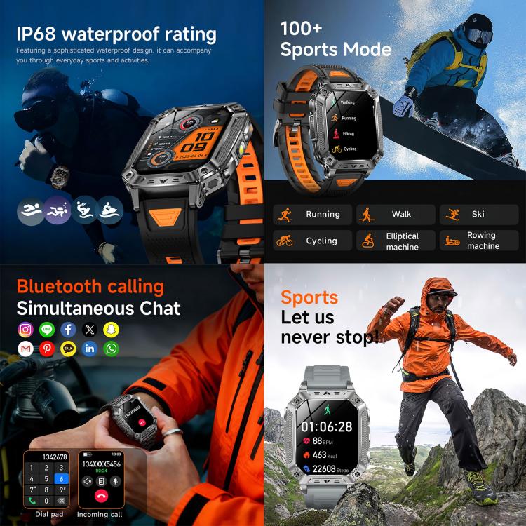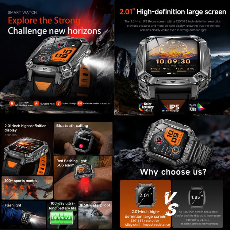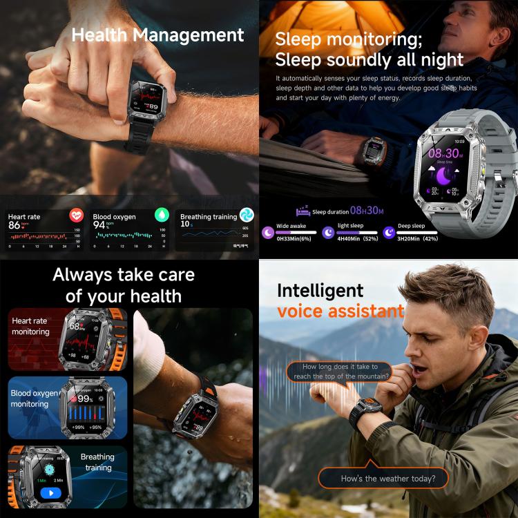 QS86 2.01-inch Smart Watch, Support BT Call, Heart Rate, Blood Oxygen(Steel Grey Silicone Band)
