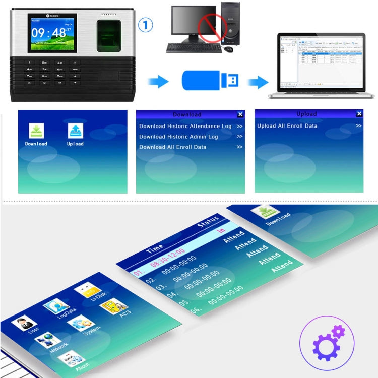 11. Authentication method: Fingerprint, Password, ID Card