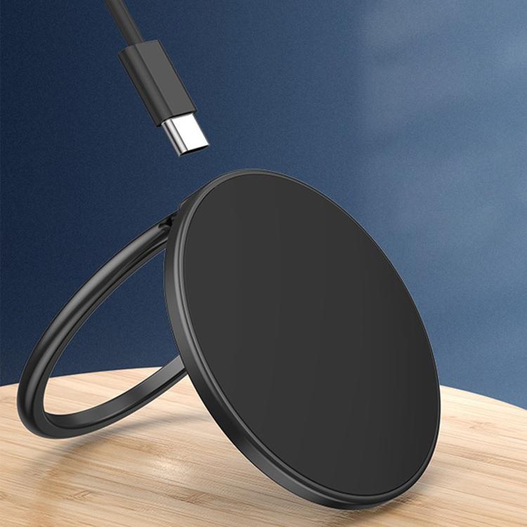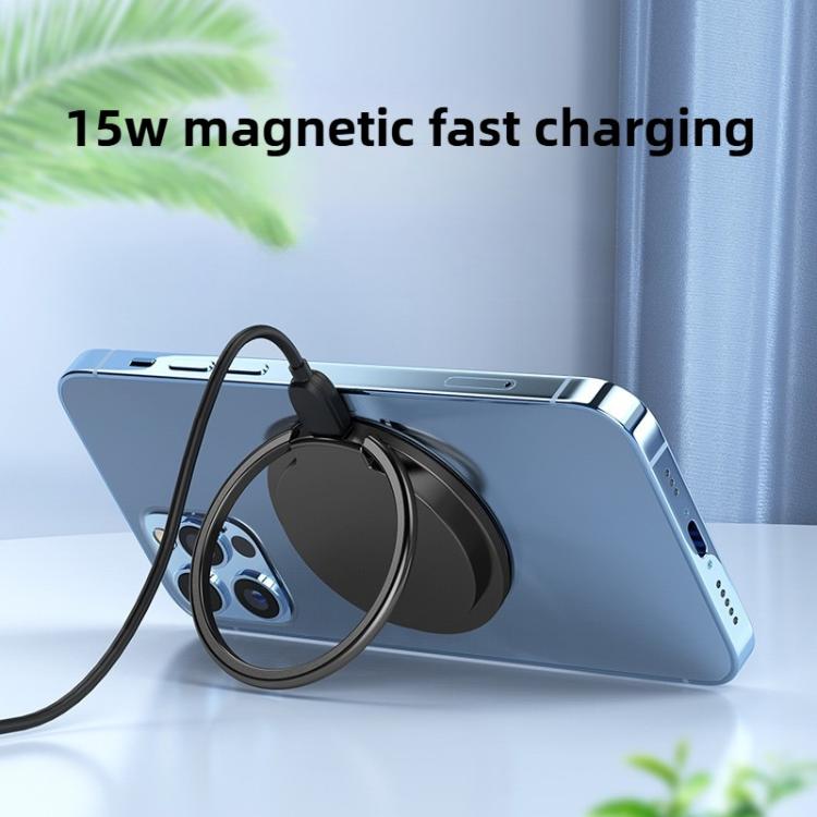 Ring Bracket Magnetic Wireless Fast Charger 15W Aluminum Alloy Stand(Black)