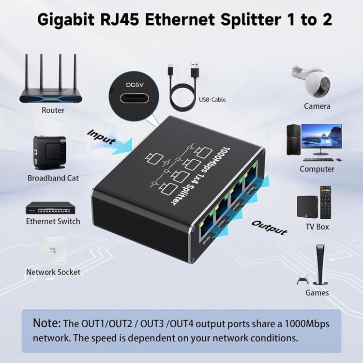 3. Provides up to 1000Mbps bandwidth, ensuring smooth data transmission for multiple devices