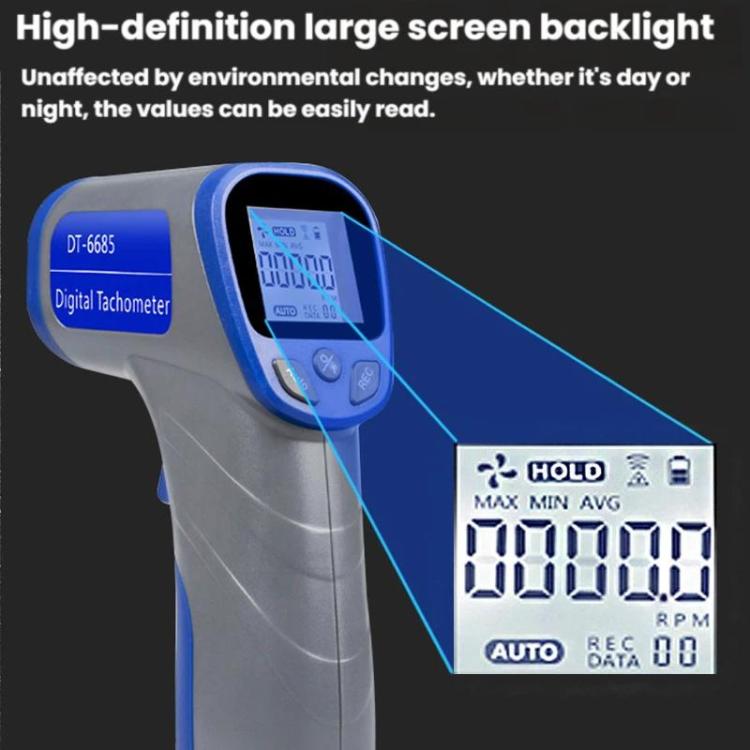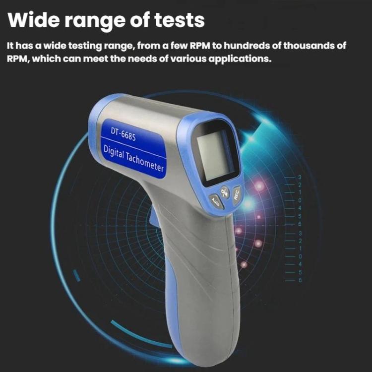 2. Resolution: 0.1 rpm for 2.5 - 999.9 rpm; 1 rpm for 1000 - 99999 rpm