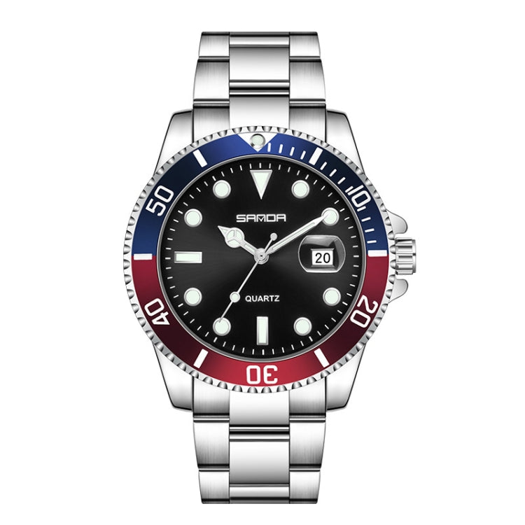 SANDA 1099 Steel Belt Electronic Watch Men Quartz Watch Simple Personalized Wristwatch(Blue Red Circle)