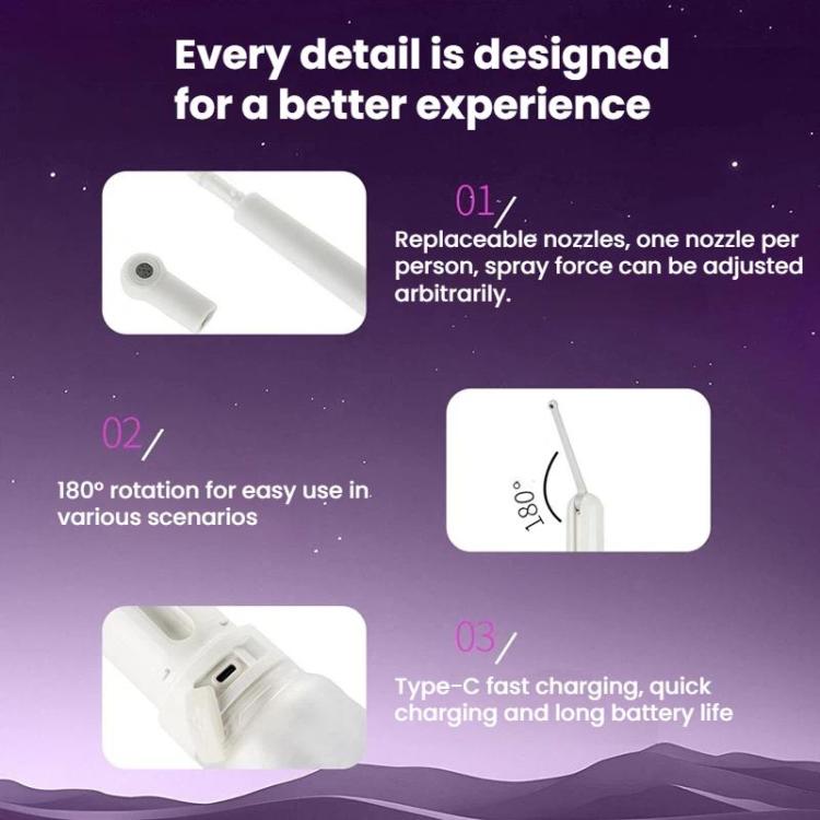2. Replaceable nozzle, adjustable water force