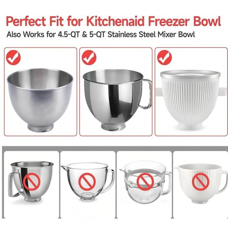 Silicone Lid For KitchenAid Mixer Bowls Compatible With 4.5QT & 5QT Stainless Steel Bowls + Freezer Bowl