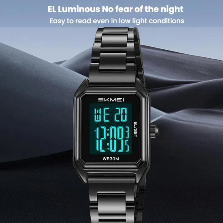 SKMEI 2493 Small Women Electronic Watch Square Steel Strap Watch, Style: Gold Case Black
