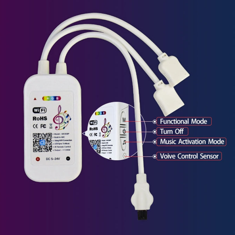 SKS-WF-04 1 to 2 WiFi Smart Voice Light Strip Controller(24 Keys)
