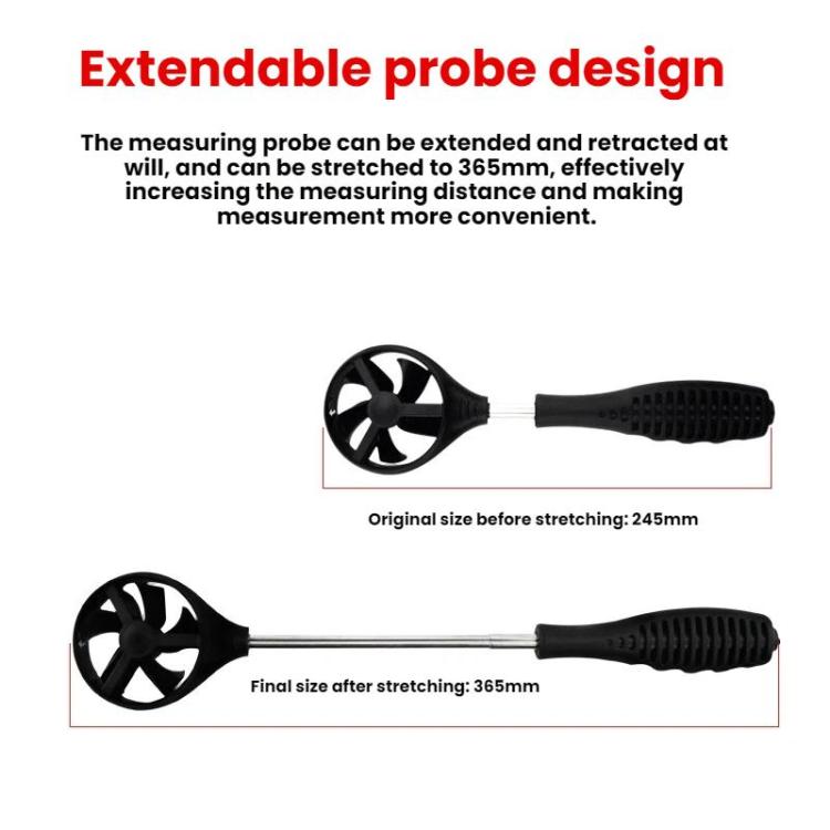 7. The measuring probe is retractable and can be extended up to 365mm, effectively increasing the measurement distance and making measurement more convenient.