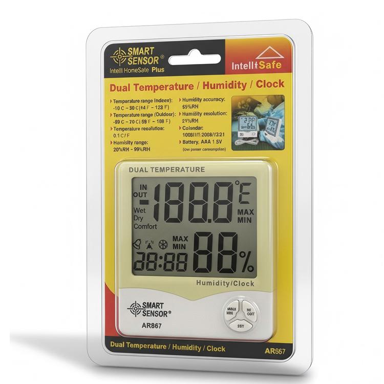 1. Measurement range: -10°C to 50°C (indoor); -50°C to 70°C (outdoor, probe)