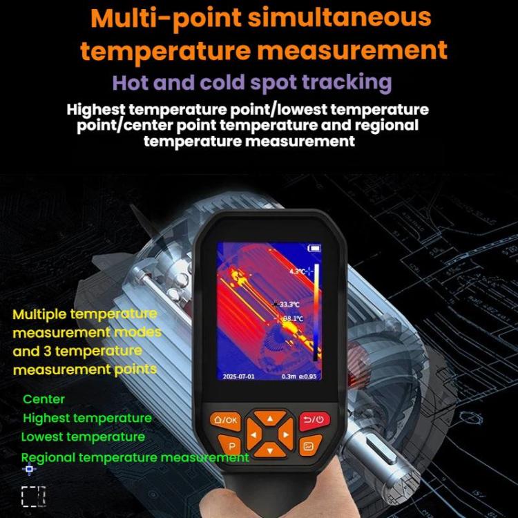 9. Temperature measurement: supports full-screen high, low, center, and area temperature measurement
