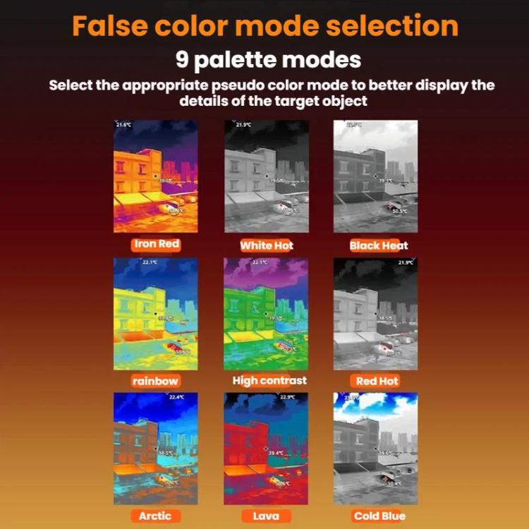 6. Nine color palette modes: Choose the appropriate pseudo-color mode to enhance object detail.