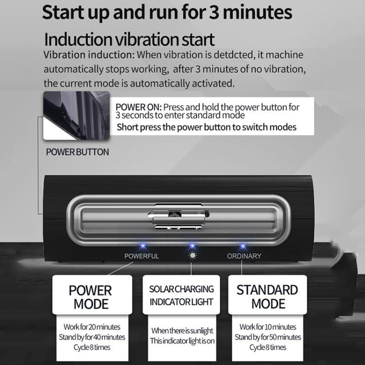 7. Solar energy powered, intelligent sensing, USB direct insertion, on-board start stop.