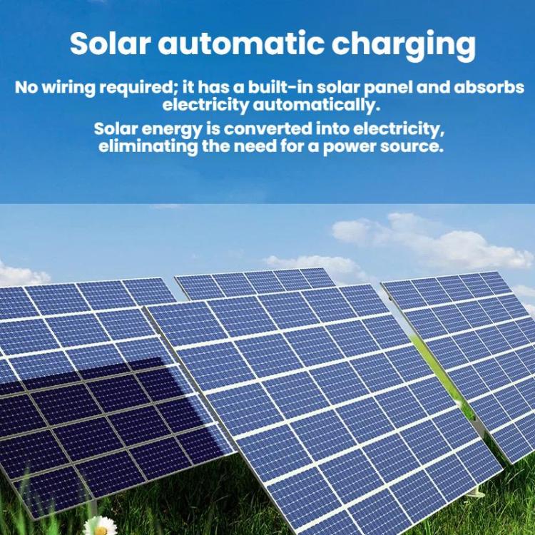 2. No wiring required; built-in solar panel automatically absorbs sunlight and converts it into electricity, requiring no power supply.
