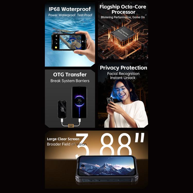 18. Features: Face recognition, USB flash drive, OTG, Google Store, flashlight, IP68