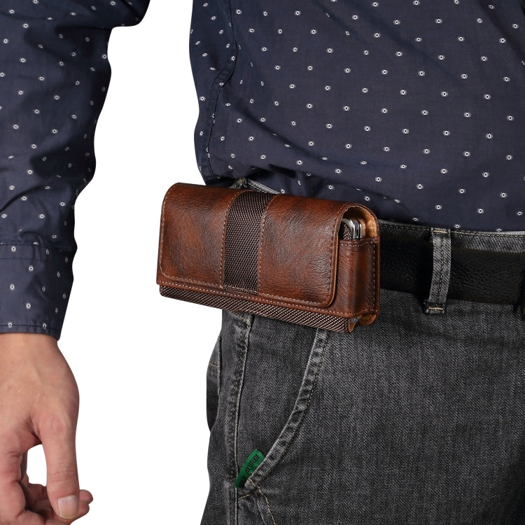 Splicing Cowhide Texture Waist Hanging Fold Phone Case(Brown)