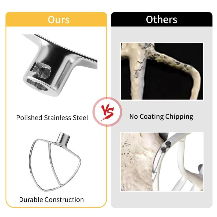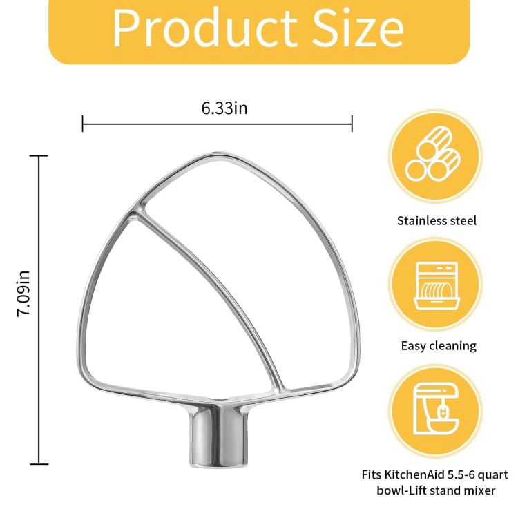 Stainless Steel Flat Beater For KitchenAid 5.5 & 6 QT Bowl-Lift Stand Mixers No Coating Durable Mixing Paddle Attachment