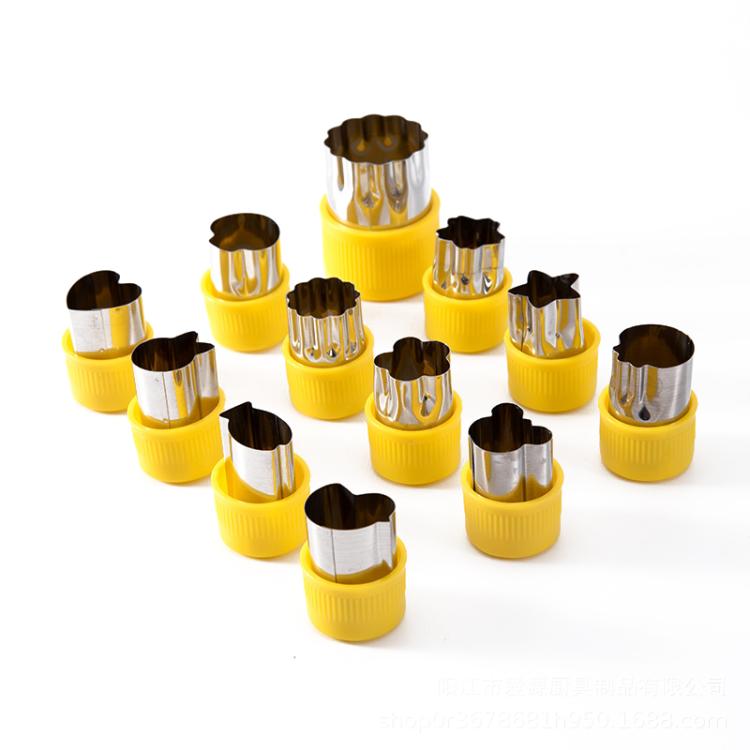 Stainless Steel Irregular Biscuit Mold Fruit Begetable Cutting Mold, Style:12pcs / Set Yellow