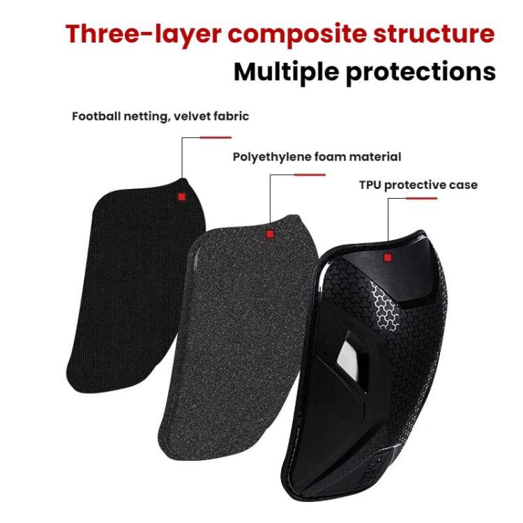 1. Material: High-strength TPU outer shell, polyethylene high-density foam middle layer, football fabric + velvet lining