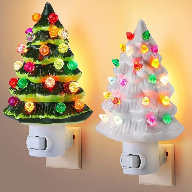 SY-001 Christmas Tree Socket Ornament Christmas Decorative Lights US Plug(White)