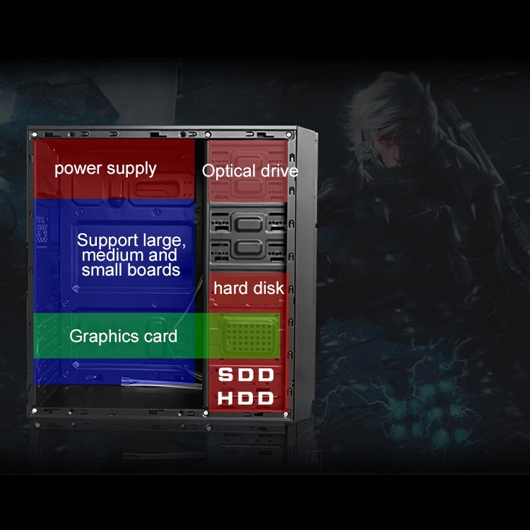 5. 1 x 12cm cooling fans are reserved for the side panels, 1 x 6cm cooling fans are reserved for the back window.