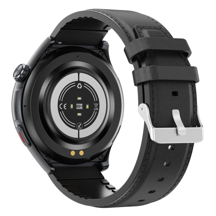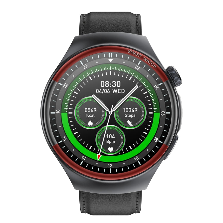 T82 1.43 inch Round Screen BT Call Smart Watch, Heart Rate / Blood Pressure / Blood Oxygen / Sleep / Blood Sugar / HRV / Metope / SOS, Strap:Leather Black