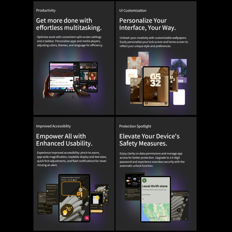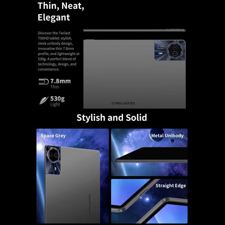 2. Lightweight & Durable Design: Weighing just 530g and sporting a slim 7.8mm thickness, this tablet is built for on-the-go use without sacrificing strength, thanks to its CNC-machined aluminum body and sandblasted finish.