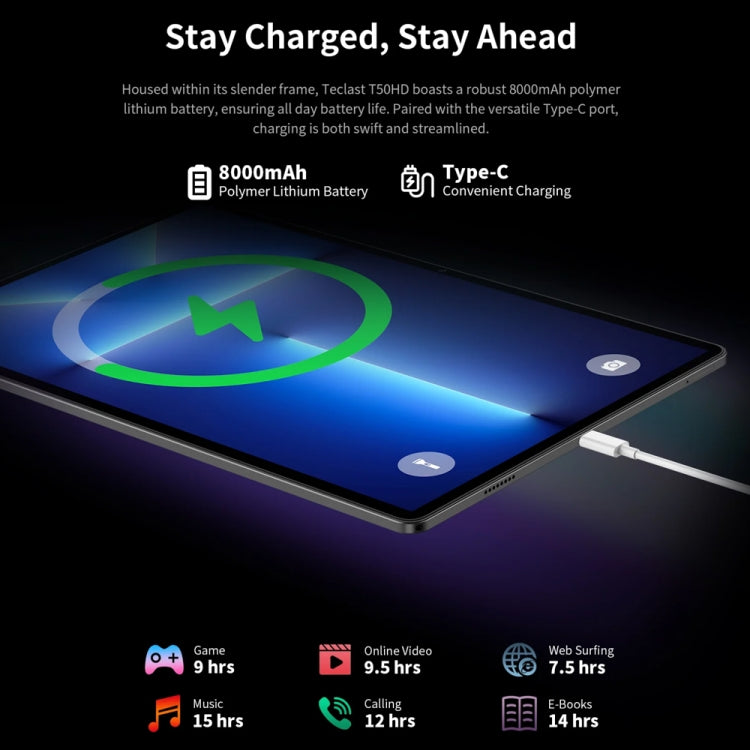 4. All-Day Battery Life: With an 8000mAh battery, it supports extended use for up to 10 hours, ensuring you stay powered through your day-to-day tasks without frequent recharges.