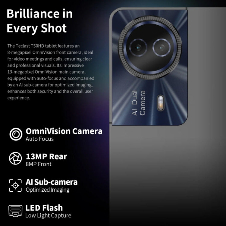 5. Superior Camera Quality: Boasting a 13MP rear camera for clear snapshots and an 8MP front camera for crisp video calls, this tablet ensures you capture and communicate with clarity.