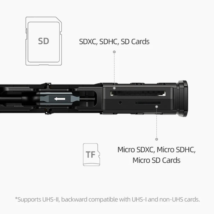 4. The card reader adopts a dual card slot design, compatible with SD/SDHC/SDXC/Micro SD/Micro SDXC/Micro SDHC memory cards. You can easily save photos to your mobile phone tablet camera on the SD card.