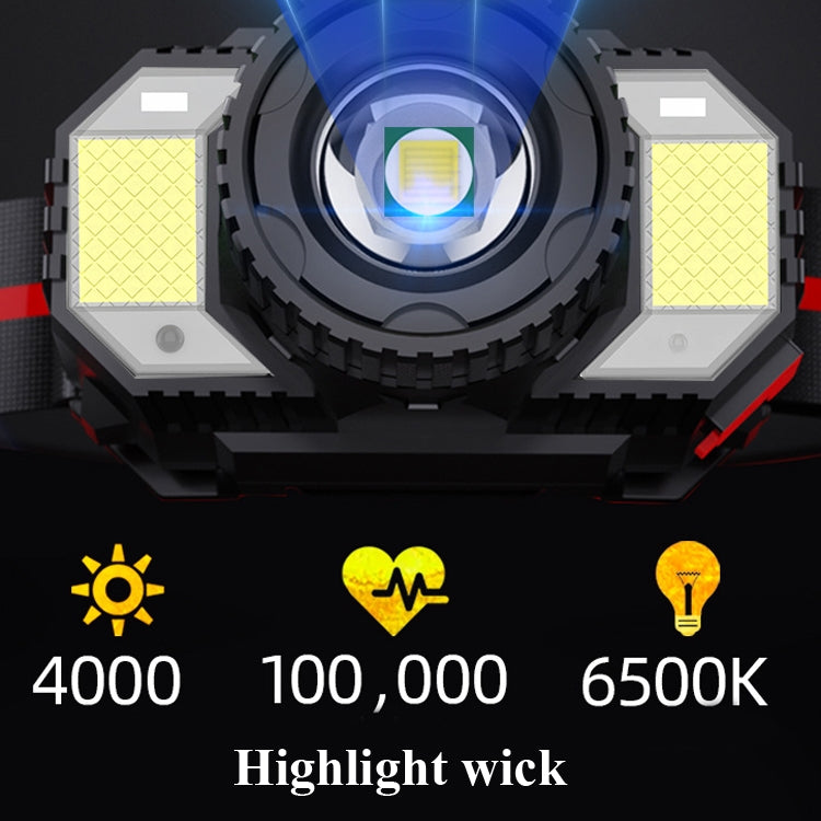 3. Battery: Built-in 18650 lithium battery 2200mAh, full-on battery life for 3-4 hours, main light battery life for 4-6 hours, side light battery life for 6-8 hours