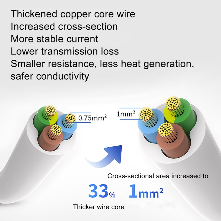 8. Thickened copper core wire, increased cross-section, more stable current, less power loss, less resistance, less heat, safer conductivity