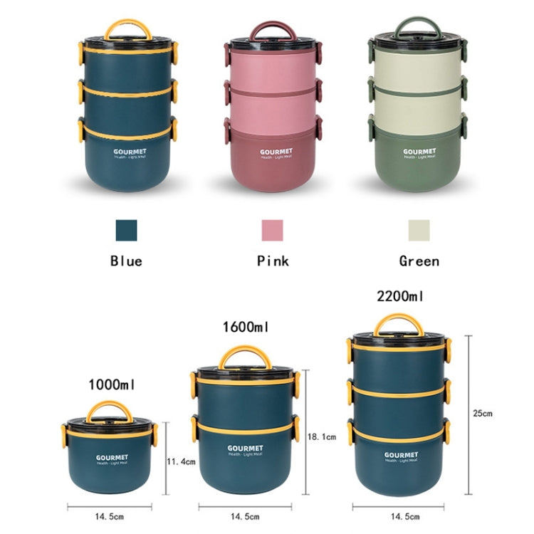 Tri-Layer 2200ml 304 Stainless Steel Insulated Bowl Student Plastic Shell Lunch Box(Green)