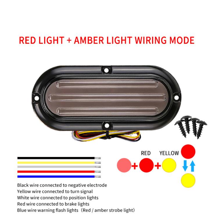7. Function 1: Low-intensity red running light + red brake light + yellow flowing turn signal + red and yellow strobe light