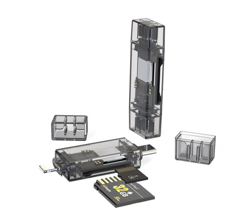 Type-C+8 Pin To SD/TF Transparent Card Reader for PC/Laptop/Smartphone