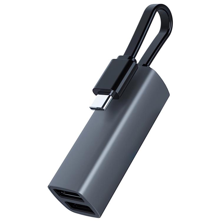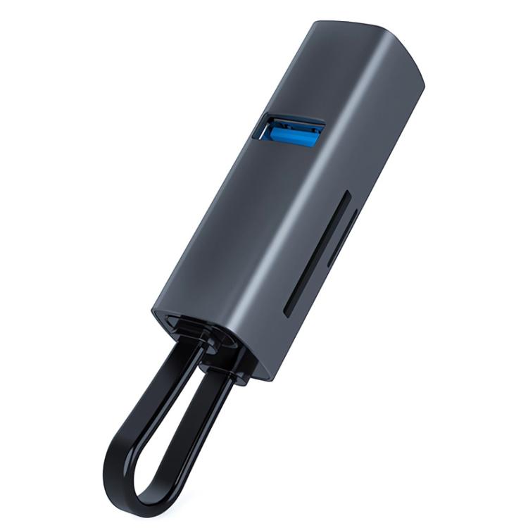 Type-C to USB3.0, Dual USB2.0, SD, TF Card Portable Multi-Functional Dock Station HUB Adapter(Grey)