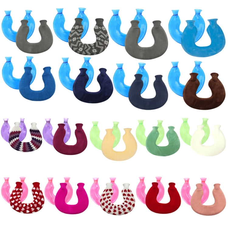 U-shaped PVC Hot Compress Shoulder And Neck Explosion-proof Water Injection Hot Water Bag(Green Beige Crystal)
