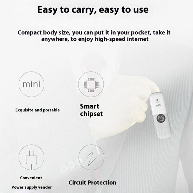 U6-E8 Eurasian Version SIM Card USB WiFi Dongle Travel Portable WiFi Hotspot 4G LTE UFI Modem(White)