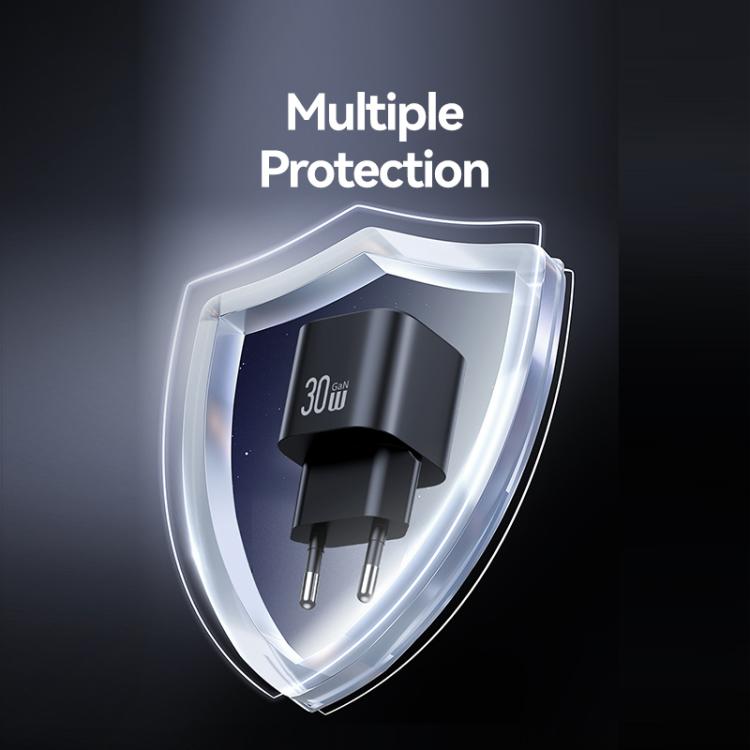 USAMS CC262 30W GaN USB-C / Type-C Port Mini Fast Charger, Plug:EU Plug(Black)