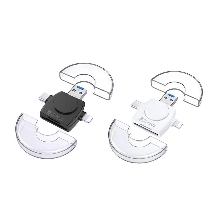 USB 3.0 To USB-C / Type-C / 8 Pin 6-In-1 Multifunctional TF / SD / NM Card Reader(Black)