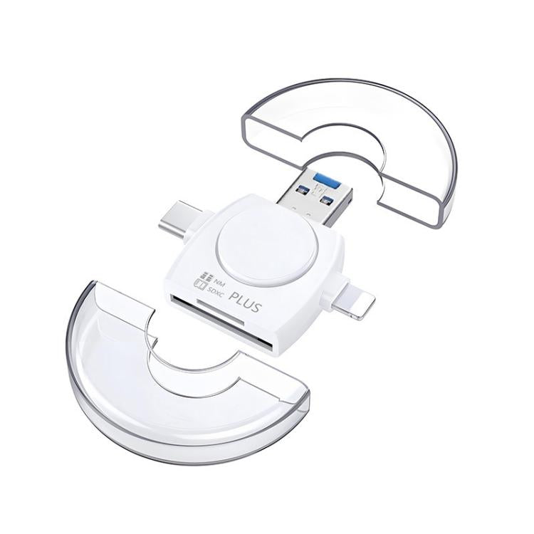 USB 3.0 To USB-C / Type-C / 8 Pin 6-In-1 Multifunctional TF / SD / NM Card Reader(White)