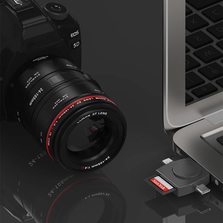 USB-A To USB-C / Type-C + Micro USB + 8 Pin 6-In-1 Round Multifunctional Card Reader(White)
