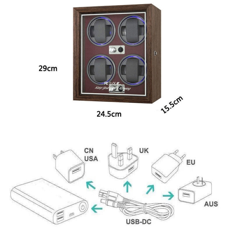 USB Automatic Mechanical Watch Shaker Watch Rotates Places Storage Box, Color: 4 Watches Red