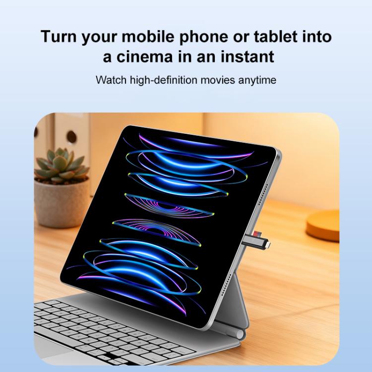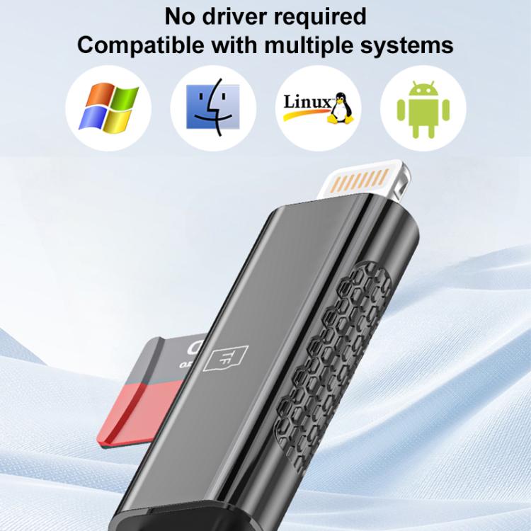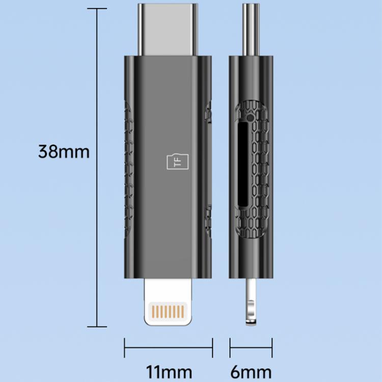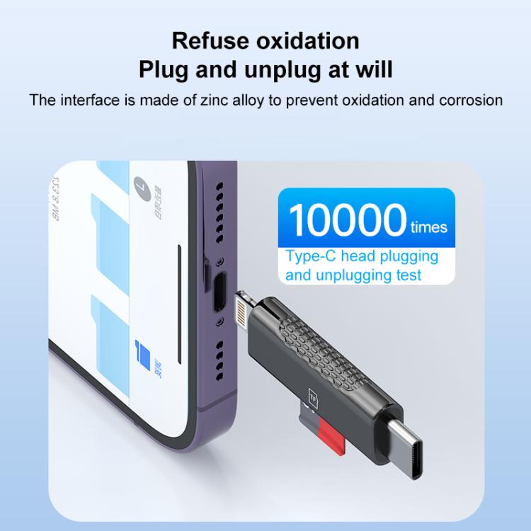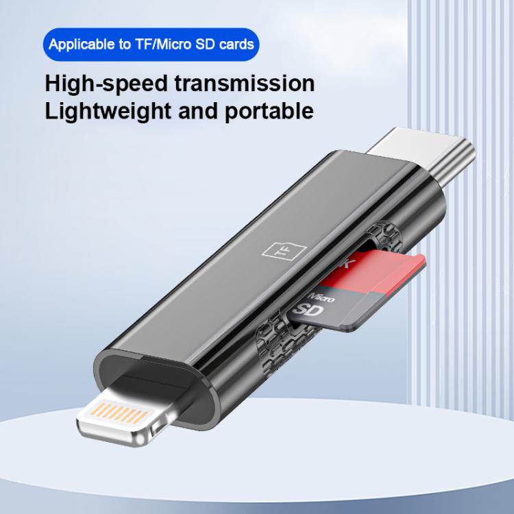 USB-C / Type-C and 8 Pin Dual Ports Ultra-mini Zinc Alloy Card Reader Supports TF, Micro SD Card(Tarnish)