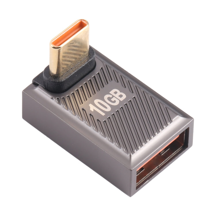 USB-C / Type-C Male to USB Female 10 Gbps 90 Degree Front Bend Charging Adapter (Gun Metal)