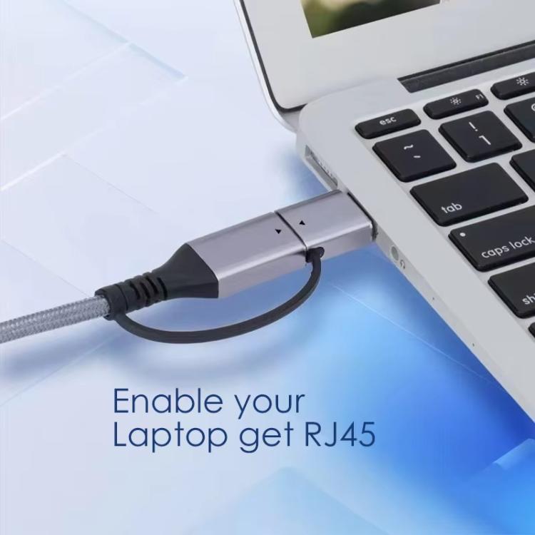 1. This 2-in-1 USB C/USB 3.0 to RJ45 Gigabit Ethernet Cord delivers stable 1000Mbps wired connectivity for laptops, tablets, and smartphones.